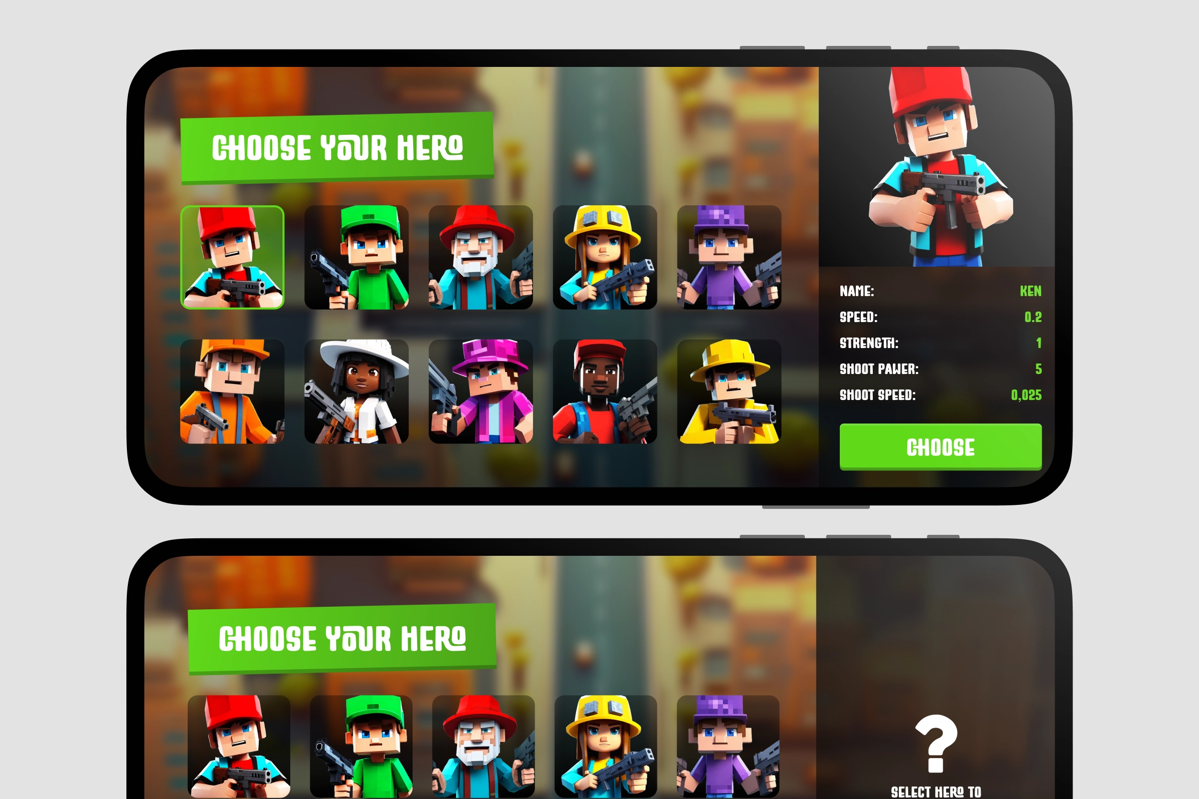 The solution focused on improving clarity, feedback, and consistency across the entire interface. I redesigned all interactive elements to reduce cognitive load and make navigation more intuitive, introducing refined microinteractions with smooth transitions and responsive states to enhance user feedback. The interface structure was reworked to establish a clear content hierarchy and visual harmony through consistent typography, spacing, and iconography. Finally, all visual assets — including characters, icons, and environments — were redrawn in high fidelity to create a stronger visual impact and a more immersive player experience.